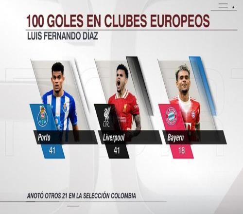 里程碑,路易斯迪亚斯在欧洲足坛已打入100球