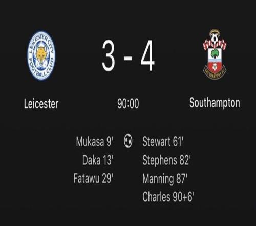 北京时间2月11日,英冠进行了一场补赛。结果前英超冠军莱斯特城遭遇惊天大逆转,他们在上半场领先3球的情况下,被南安普顿下半场连追4球。