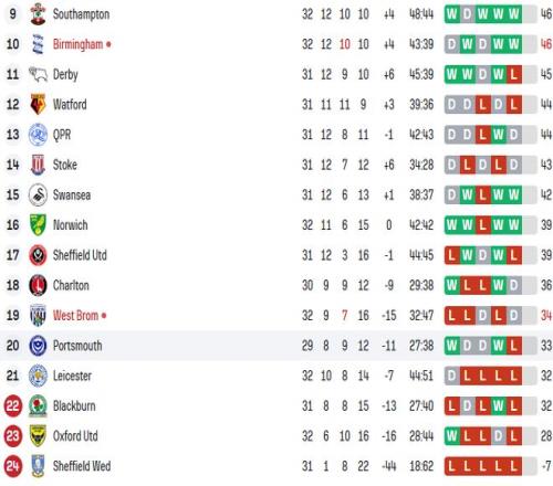 而本场输球后,莱斯特城目前和降级区的布莱克本同积32分。莱斯特城还比布莱克本多踢1场,保级形势十分严峻。
