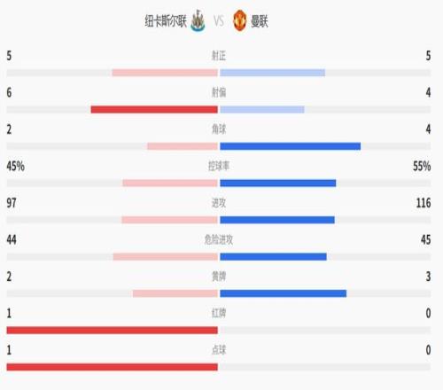 但两分钟后,B费在禁区内放倒戈登,主裁判判罚点球。戈登亲自主罚命中,纽卡1比0领先。多打一人的曼联反而先丢球。