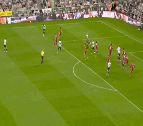 2、对纽卡第一个丢球,对方角球开出后利物浦解围出来,纽卡再次传中,直接头球破门。