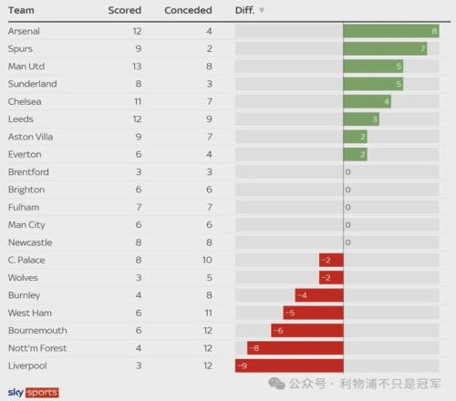 --本赛季英超不算点球,利物浦打进3球丢12球,净胜球-9,而榜首阿森纳定位球打进12球丢4球,净胜球+8。惨不忍睹。
