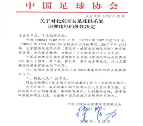 足协官宣罚单3小时后,北京国安正式摊牌,13字表态不服