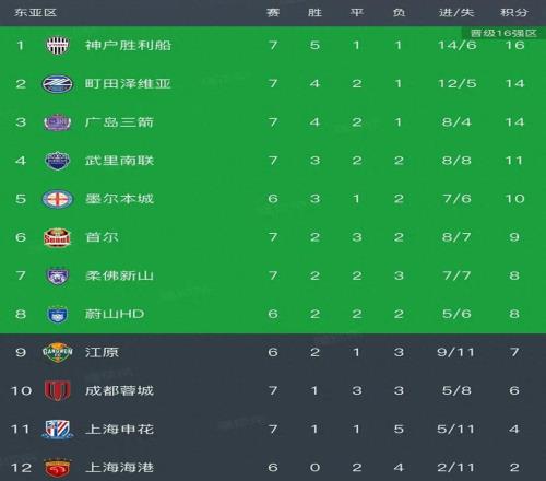 亚冠精英联赛最新积分榜