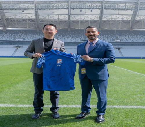 阿联酋沙迦副酋长率团拜访上海申花,申花方面赠送球衣+签名足球