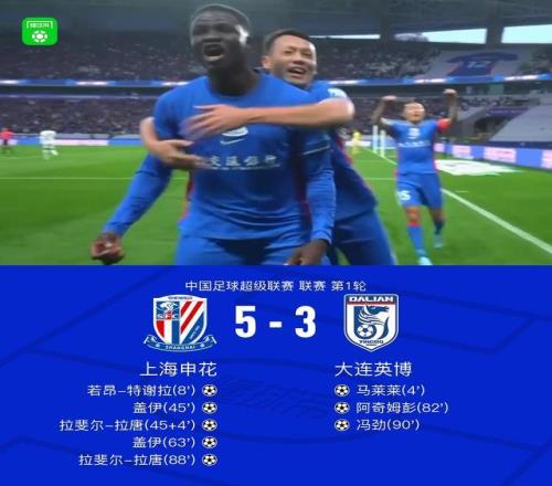 2026赛季中超第一轮,上海申花主场5-3击败大连英博,据统计,这是中超历史上总进球数并列第二多的首轮比赛,仅次于2018年广州德比。